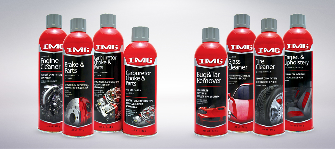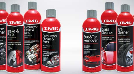 IMG Chemicals product packaging for various automotive products.