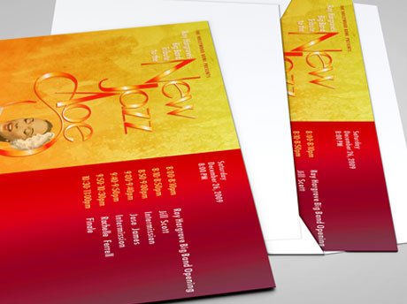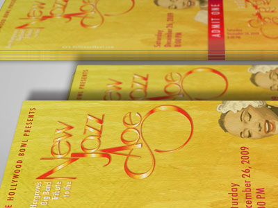Promotional poster, event card and tickets for New Jazz Age music concert.